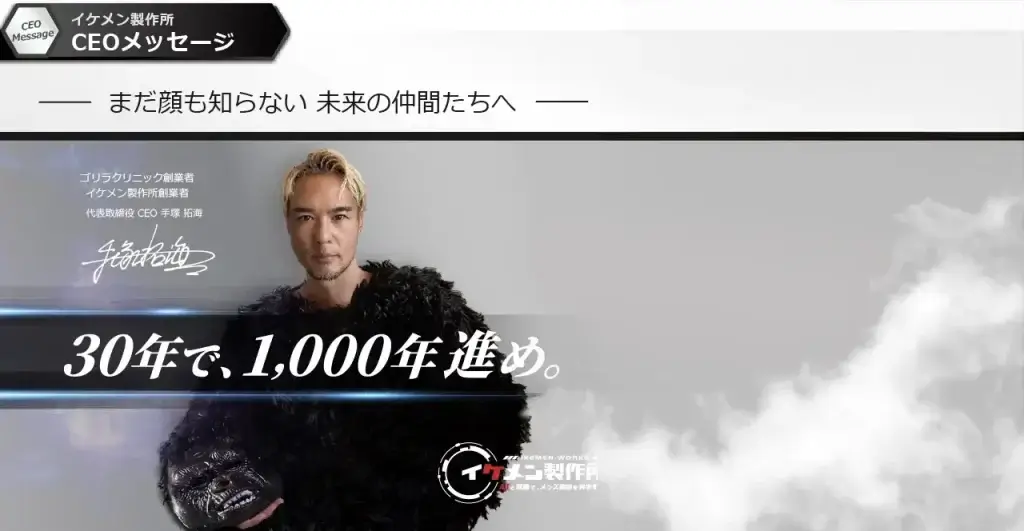 2017年11⽉のオープン以来、イケメン製作所は驚異的な集客⼒を発揮してきました。 創業者の⼿塚はゴリラクリニックを⼿がけた経験を活かし、美容業界に新たな⾵を吹き込みました。