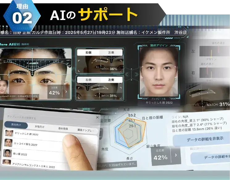 これにより、顧客は「⾃分に最適なデザイン」を受けられ、施術の精度も⾶躍的に向上します。